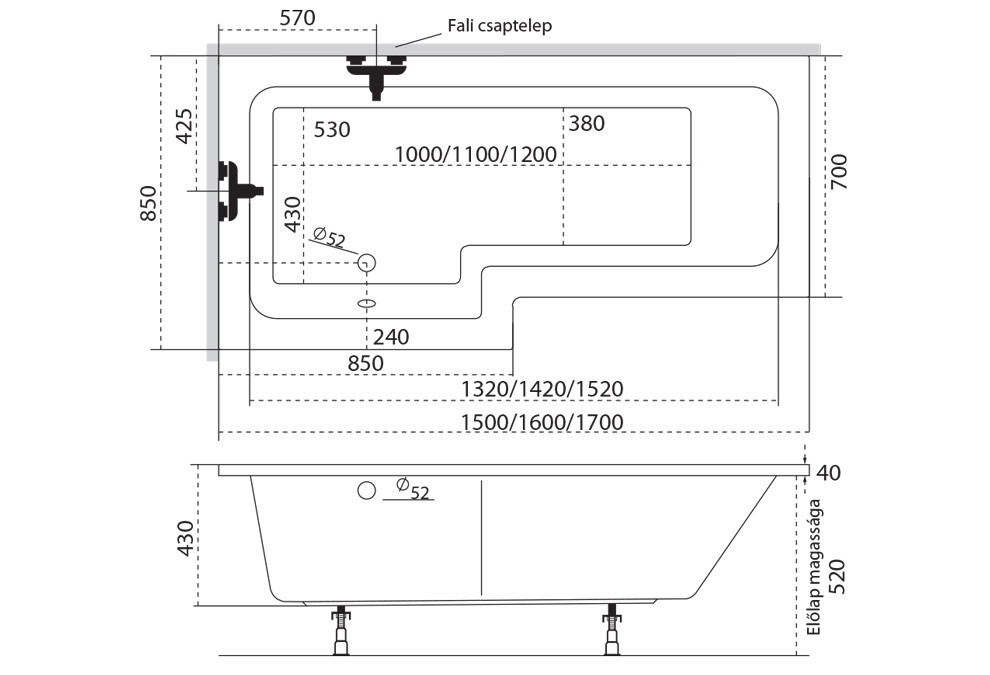 Egyenes akril kádak
